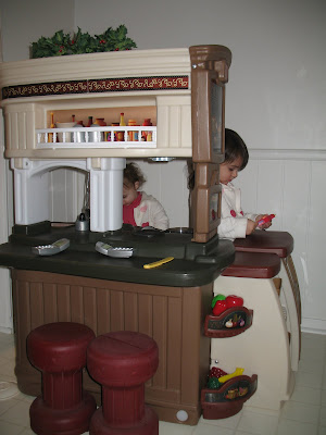 Having a sister to play with is (usually) so much fun! We really do play quite well together.....don't be too fooled though....we do have our moments and let me tell ya....when it comes to getting what you want....11mo. between the two of us really puts up for a good battle every now and then! In the end....we both end up with a toy that works for both of us!
